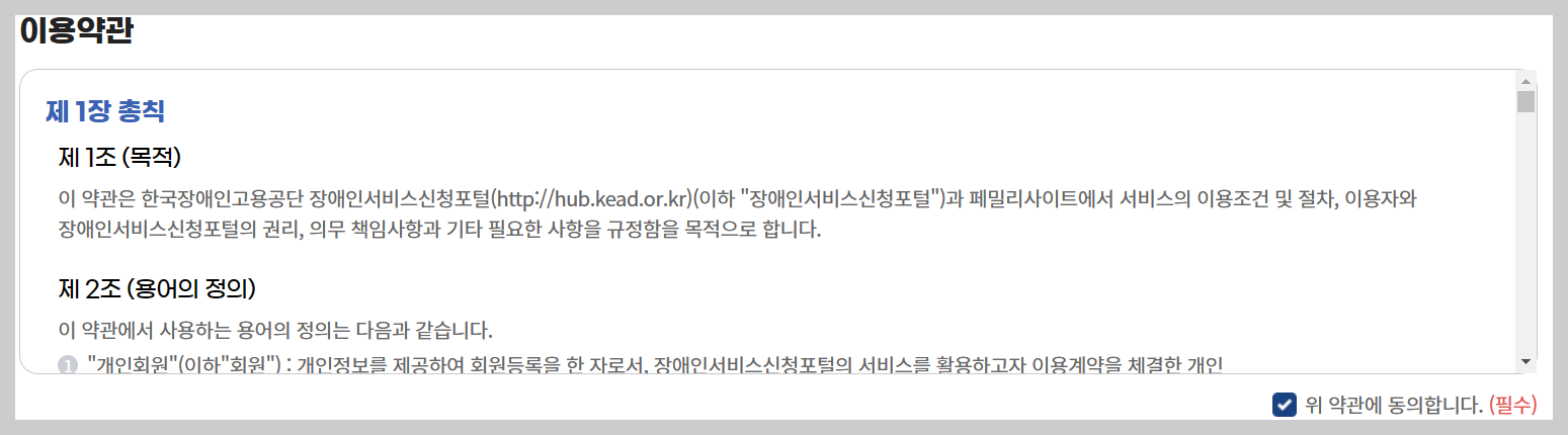1. 장애인서비스 신청포털 접속후 회원가입을 확인 합니다.