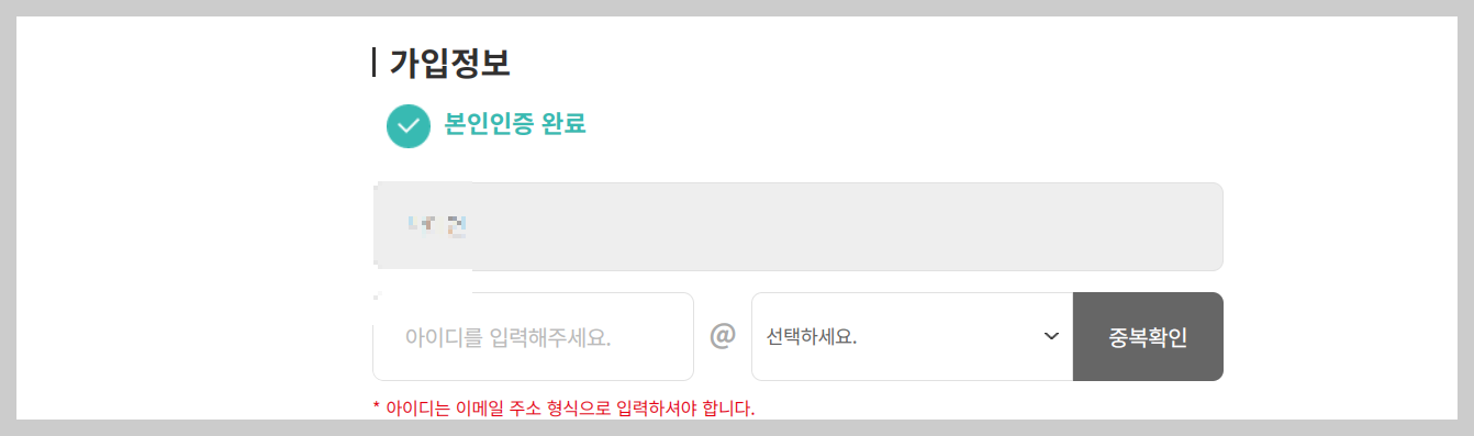 5. 본인인증후 가입정보를 입력합니다.