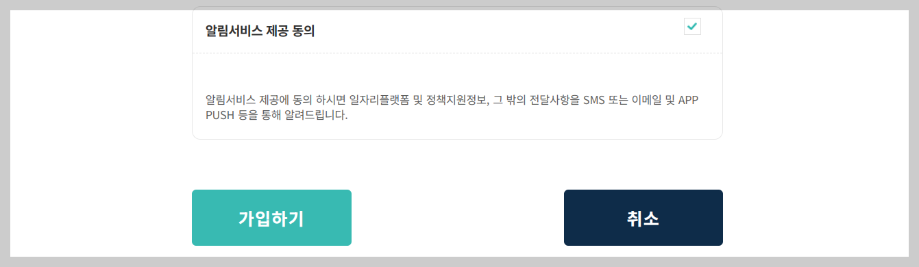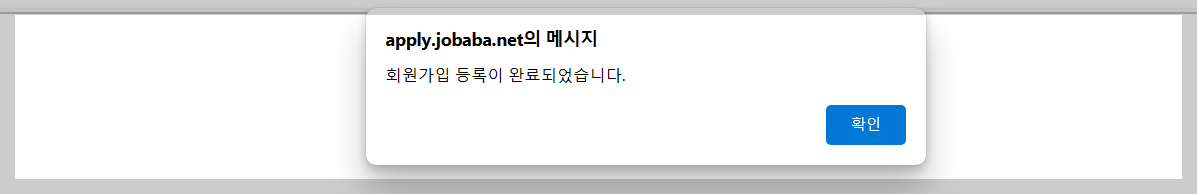 7. 가입하기 클릭을 하면 잡아바 어플라이에 회원가입 등록이 완료됩니다.