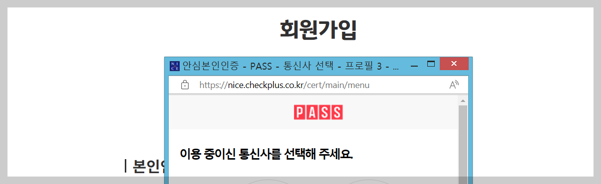 4. 휴대폰 본인인증 PASS진행합니다.