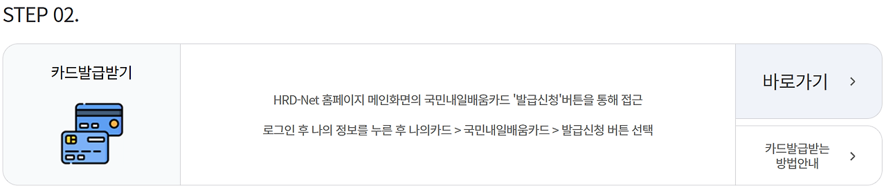 ※ “기존카드재사용”은 카드발급 승인 후 소지하고 있는 내일배움카드로 즉시 사용할 수 있습니다. (실물