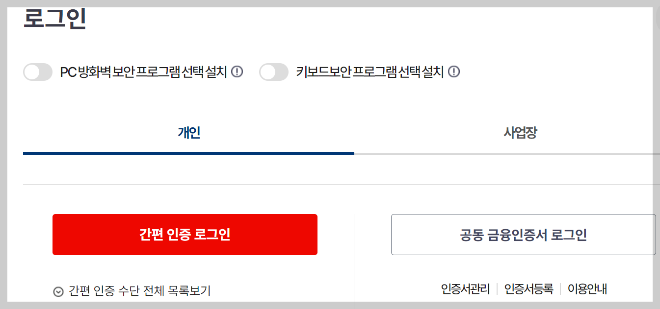 | 1.건강보험공단 접속 | 2.본인인증 |