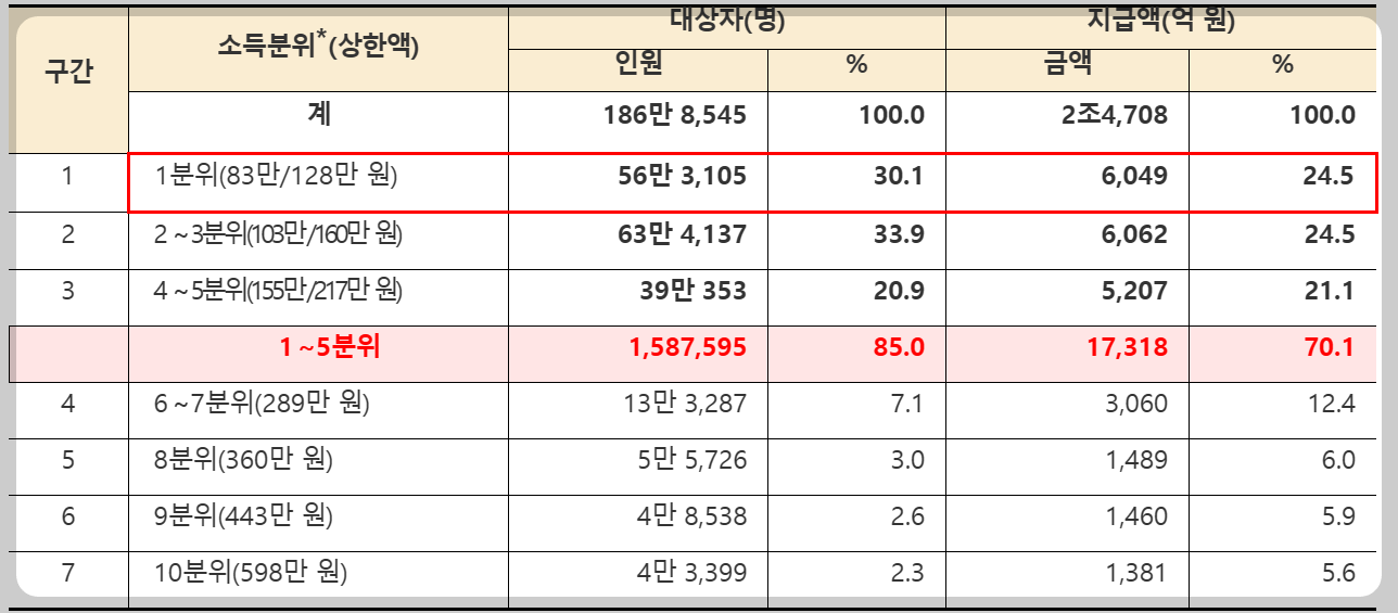 < 소득분위별 지급 현황 >
