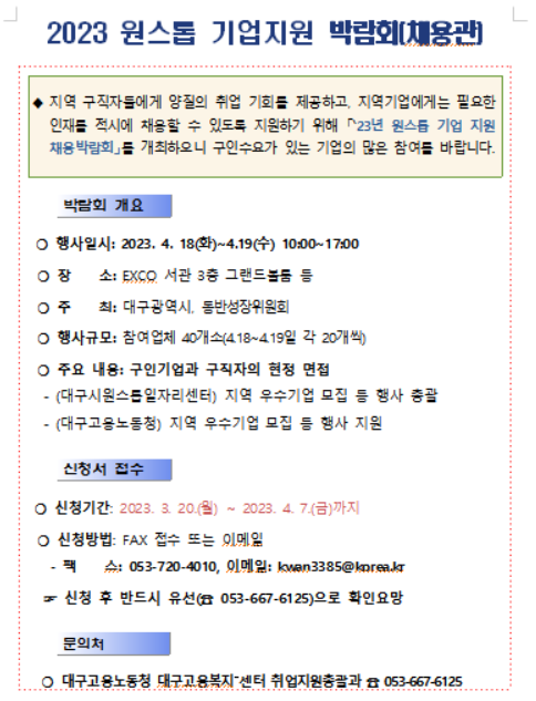1. 행사명: `23년 원스톱 기업지원 채용박람