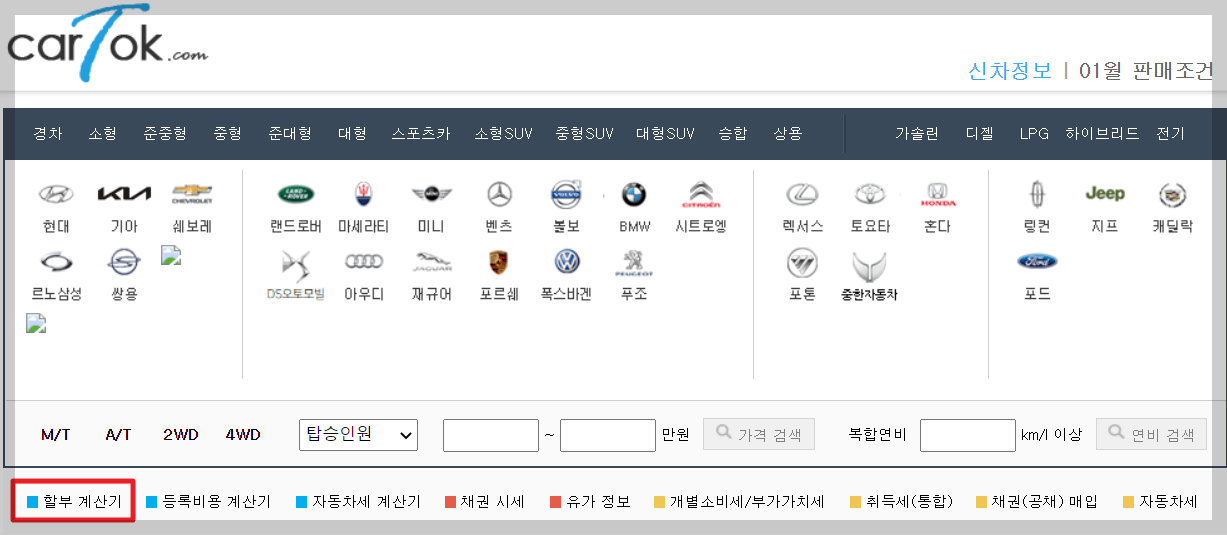 대한민국 자동차 등록수가 5천대가 넘어 섰습니다. 사람1명당 차량한대 꼴로 자동차가 동록 된 것처럼 이제는 개인승용차가 보편화되었습니다.대한민국 5천만 인구수보다 자동차수가 많다는건 우리나라 사람들이 자동차에 얼마나 많이 의존하고 있다는것을 보편적으로 보여주는 현상입니다. 차량구매시 할부금액이 대략 한달에 얼마나 나올지 예상은 하지만 생각보다 높은 금액이 나와서 놀라시는 분들도 있습니다. 차량 할부 계산기로 개인의 월 수입과 매달 나가는 할부 비용을 비교해서 자신이 원하는 차량을 구매 하시기 바랍니다.