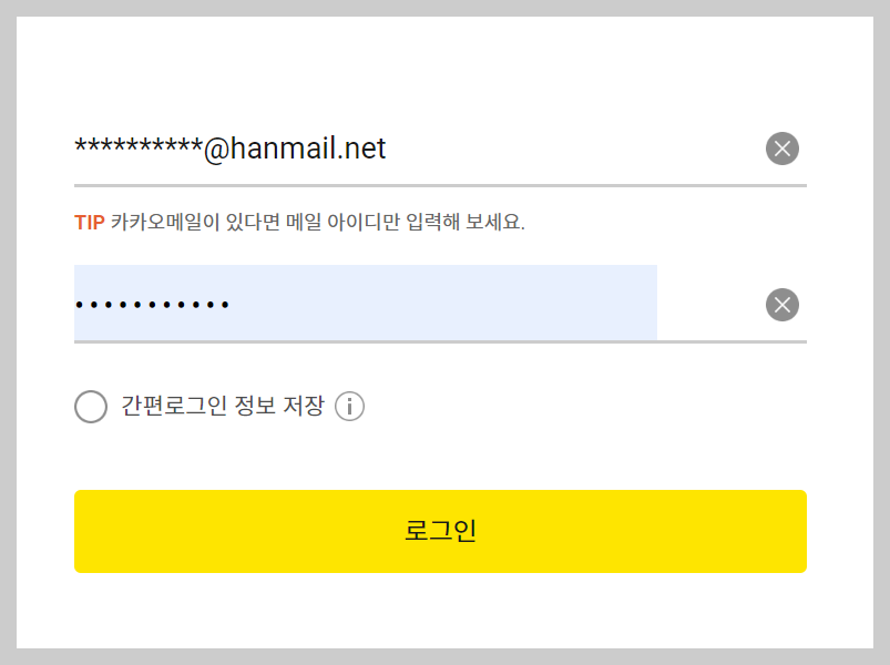다음 한메일 로그인방법은 개인계정의 이메일기입후 비밀번호입력하여 로그인하는 방법과 카카오톡 QR코드로 자동로그인방법 두가지가 있습니다.